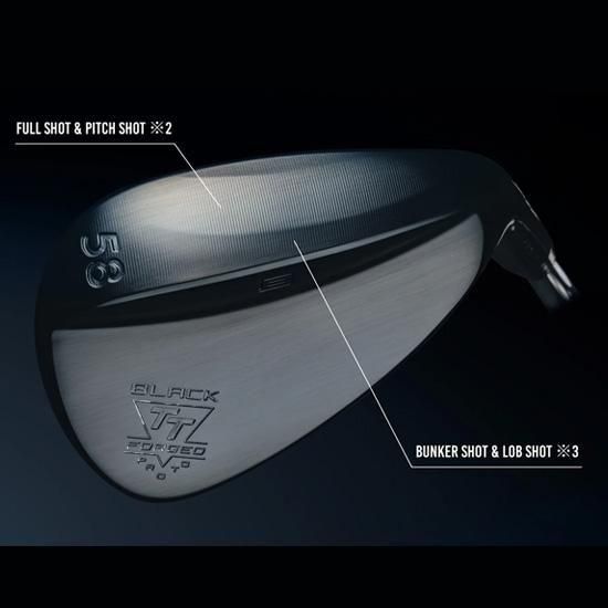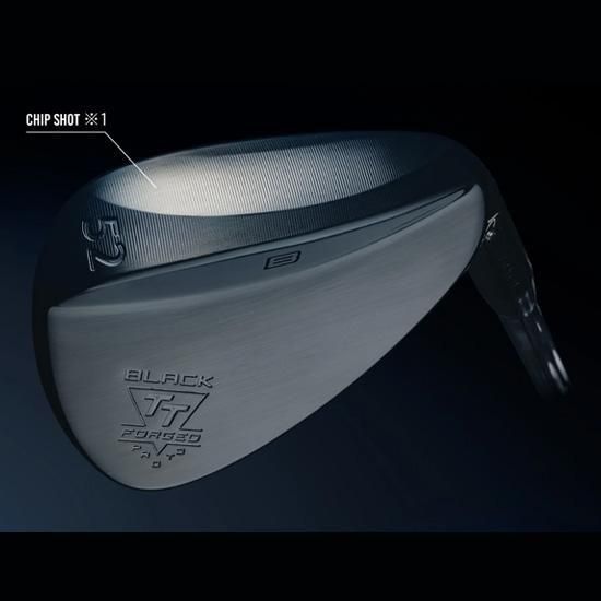 BLACKはブラックIPフィニッシュの印、軟鉄20C素材を精密鍛造したボディーの全体を、CNCマシン加工で削り出して作り上げたれたウェッジです。ソール面には、三つの段差が設けられ、それぞれの場面でその箇所を意識して打つことにより、素晴らしいウェッジショットが生み出されます。フェース面にはフルスコアラインがマシンカットで彫刻され、構えやすさと同時に強烈なスピン性能を発揮します。